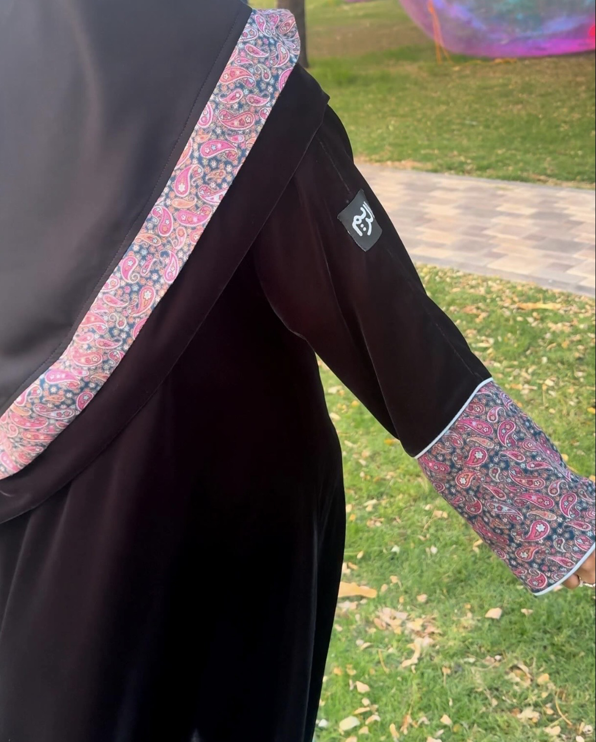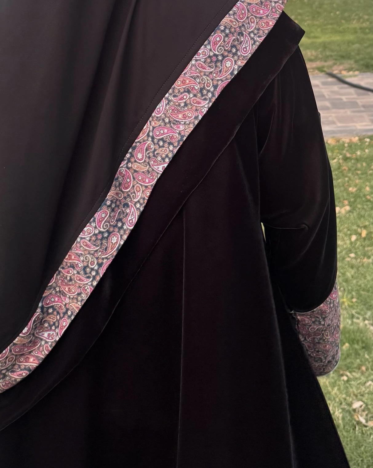 الوصف : عباية كلوش وطرحة طرف مخمل وكشميري