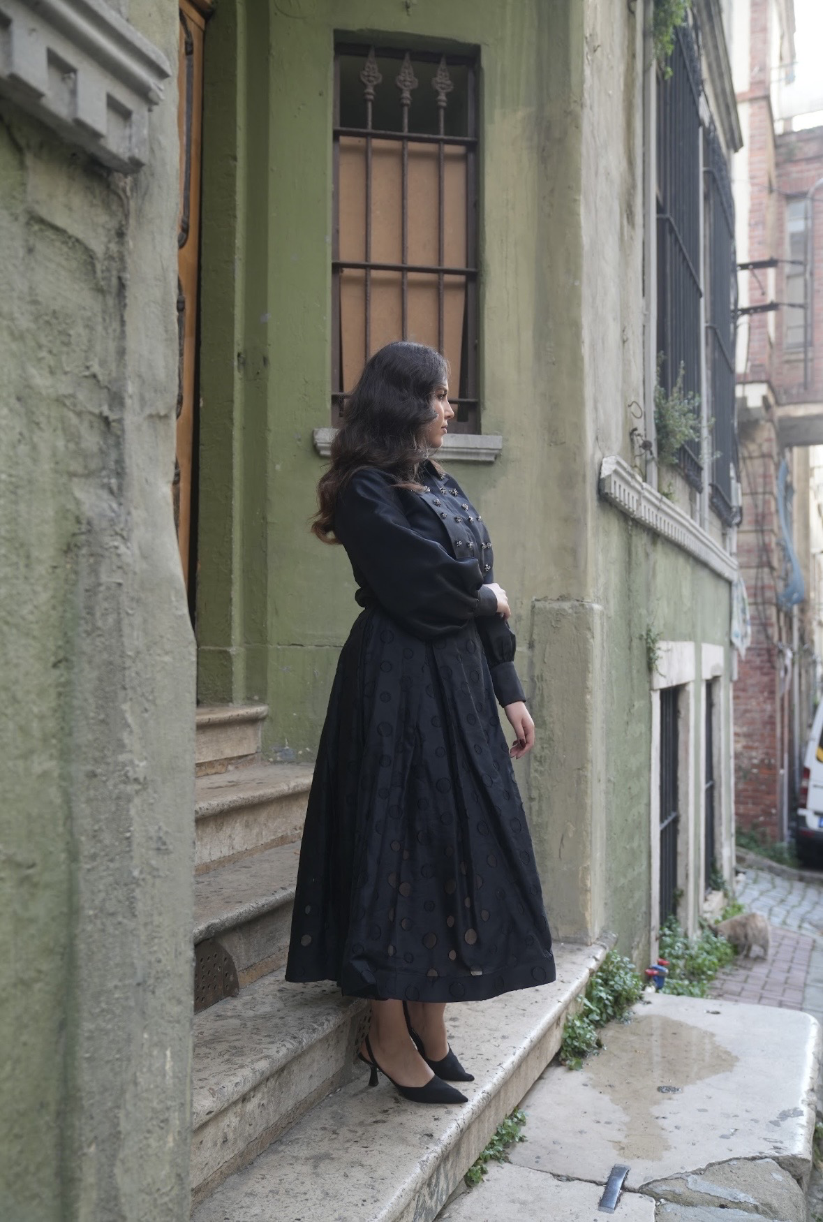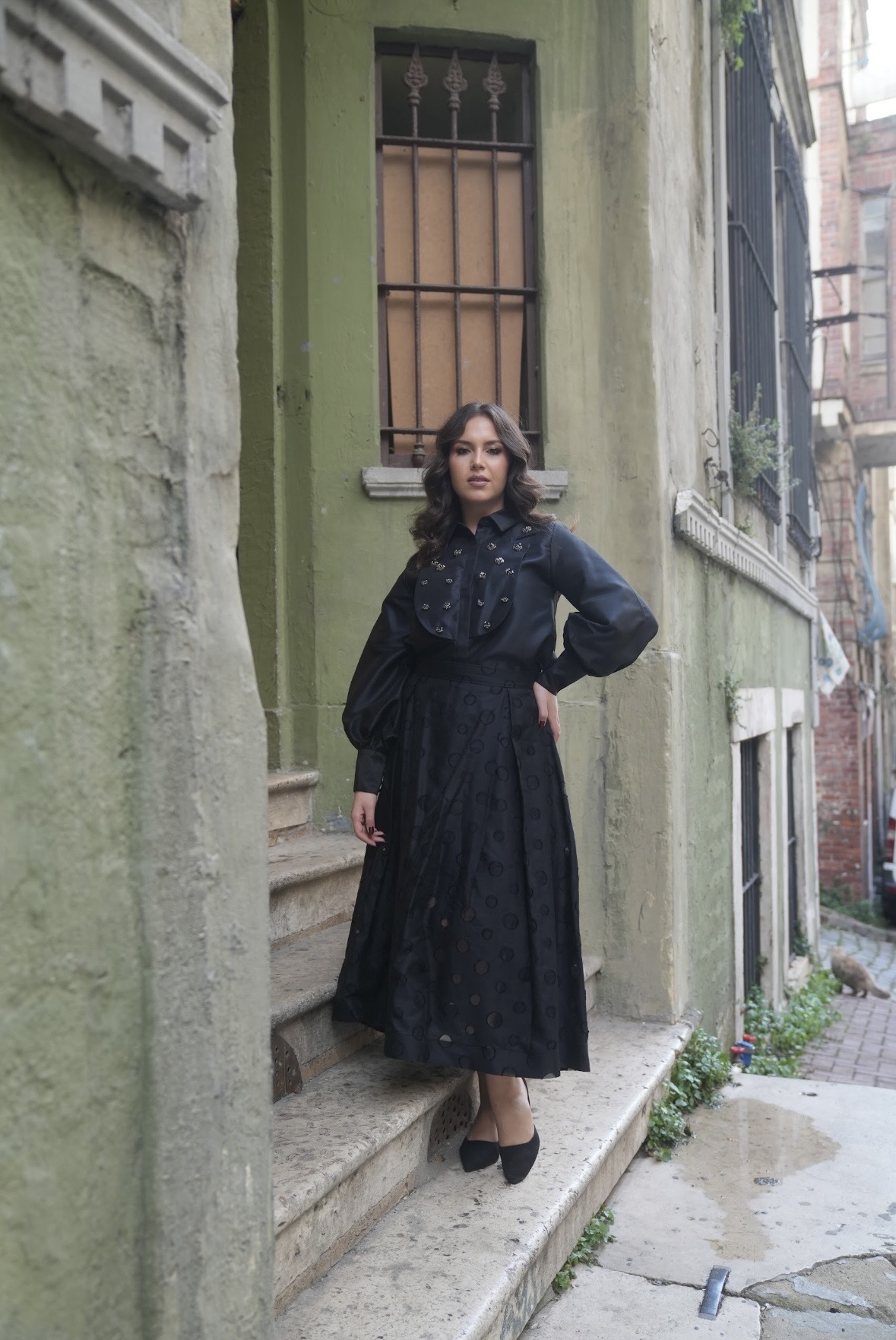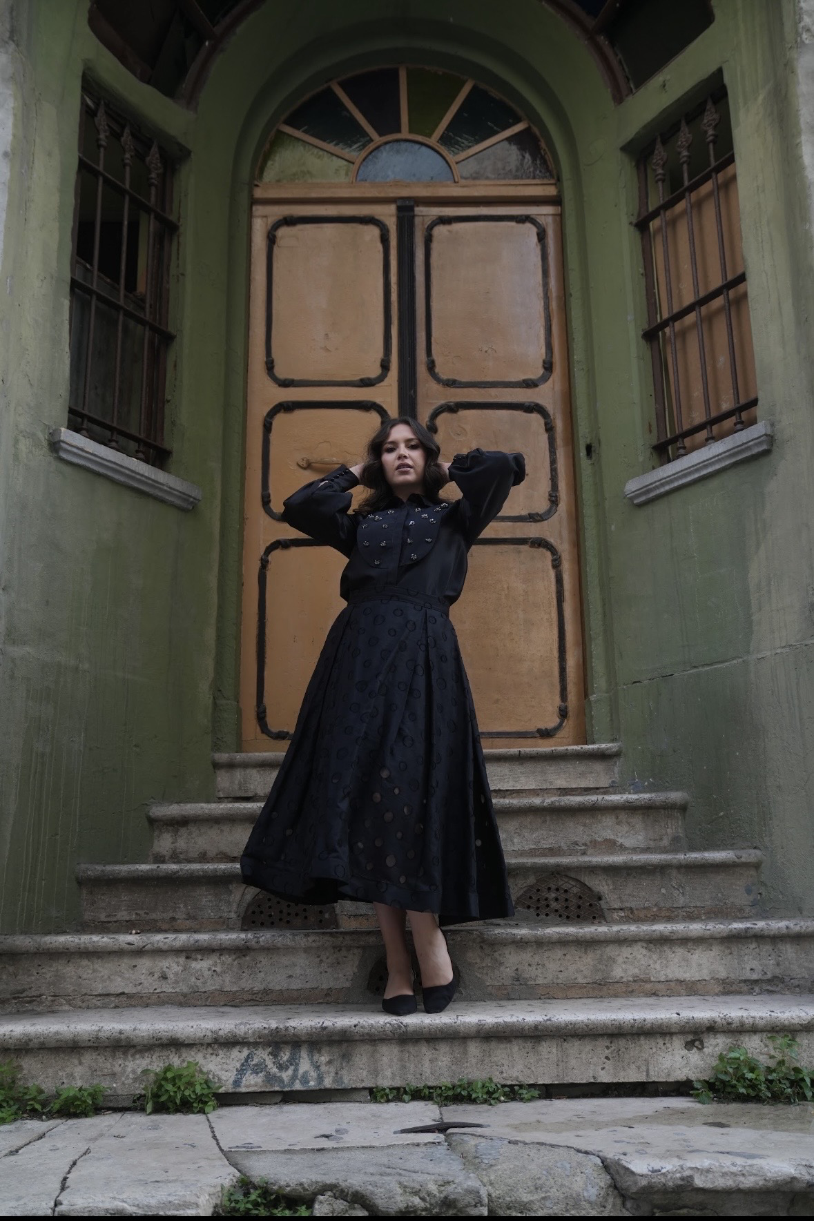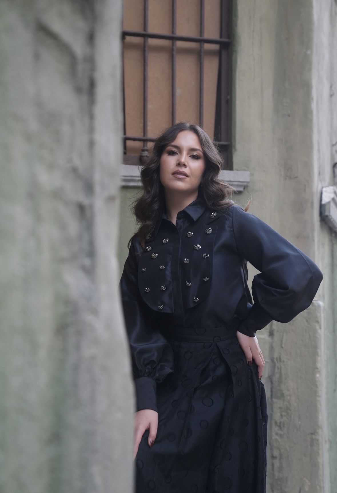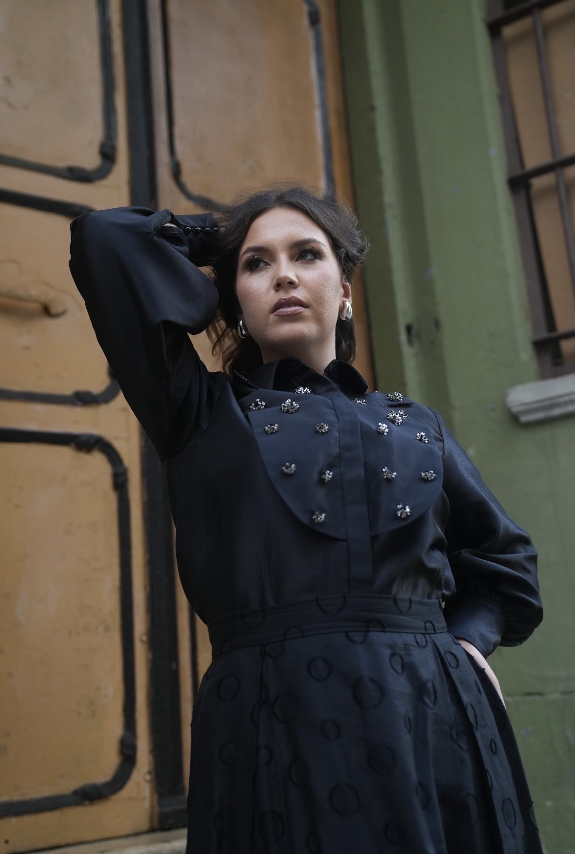 بدله قطعتين من قماش اورقنزا على تفتا مزينه بالأحجار والكرستال