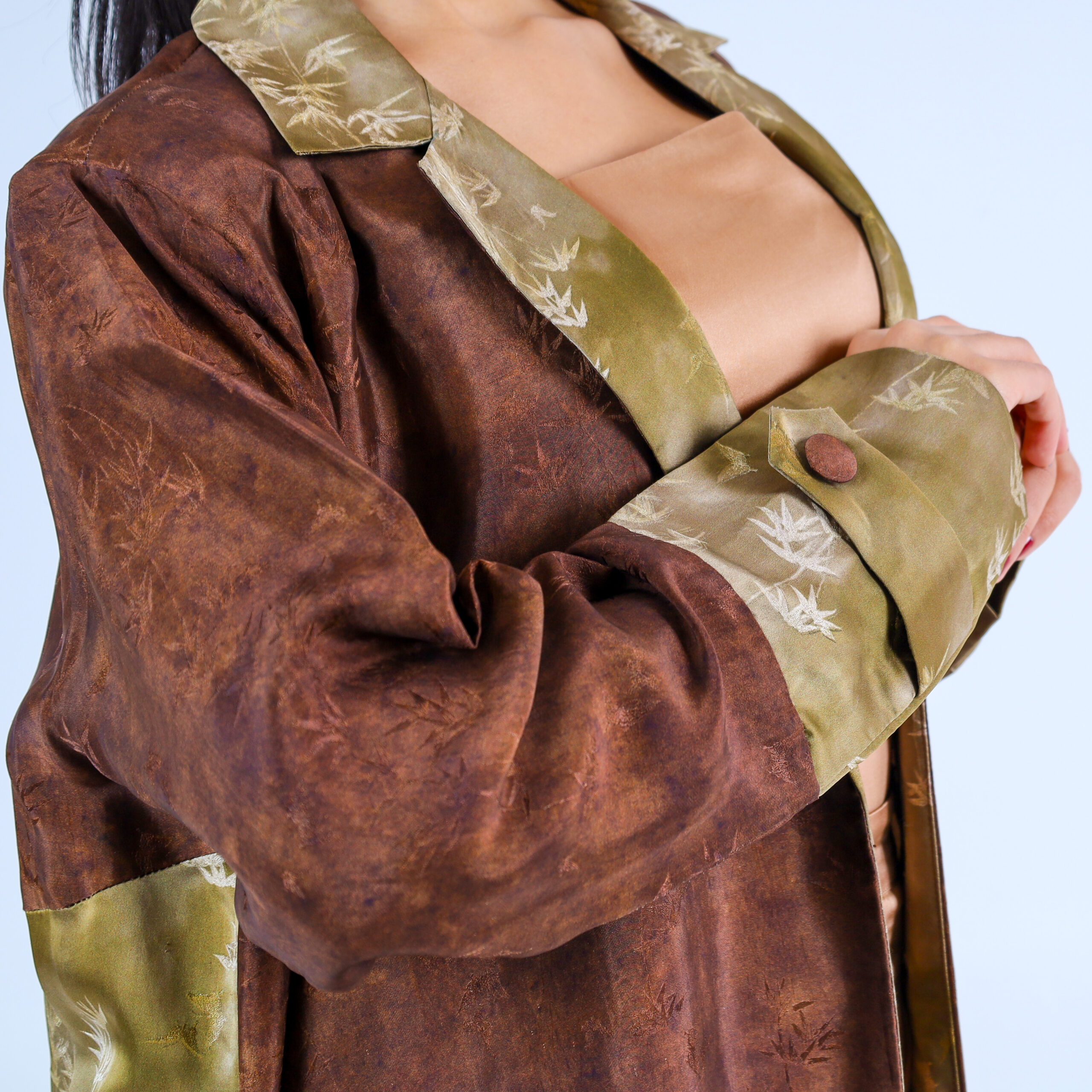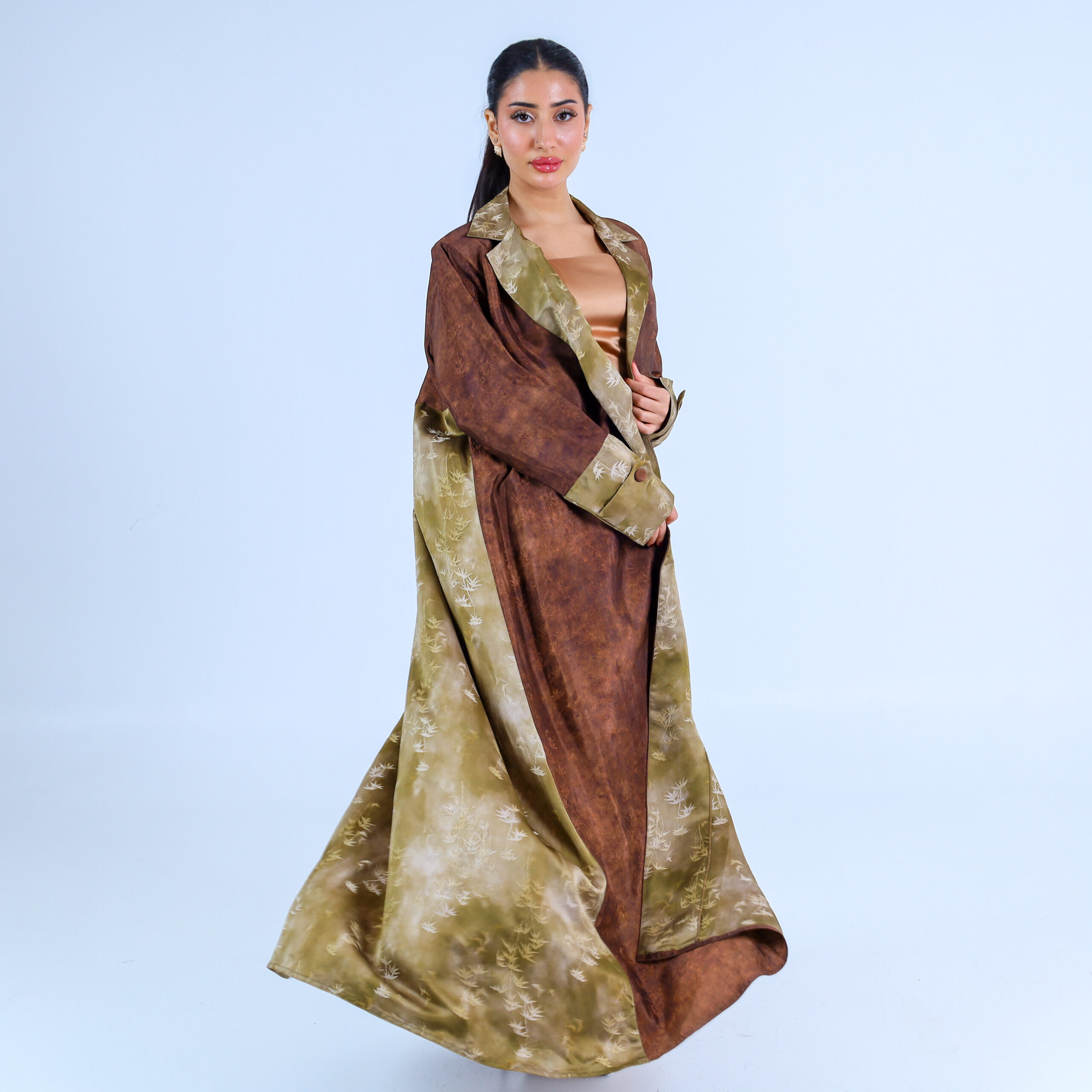عباية من الحرير بلون بني وذهبي بتصميم بلايزر