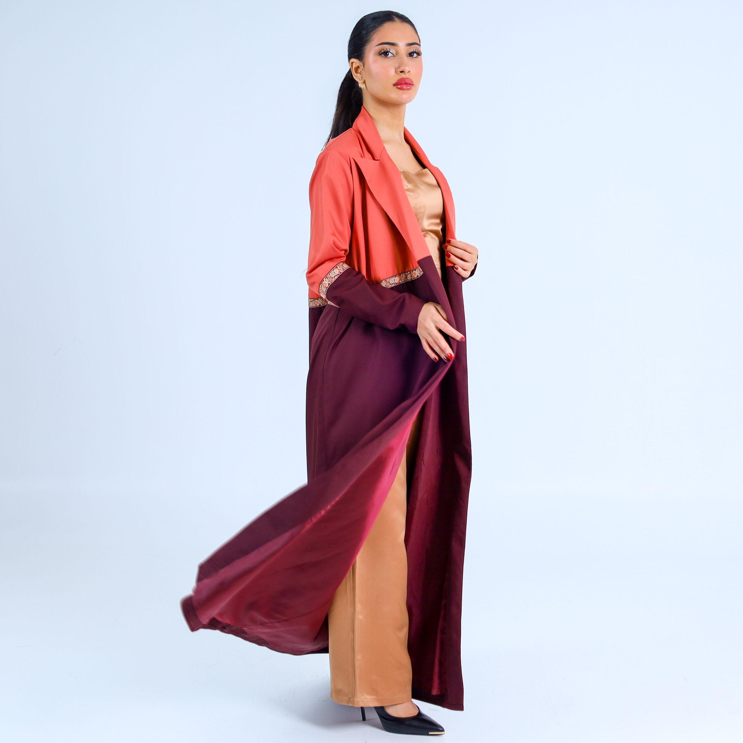 عباية بلايزر بلون عنابي بتصميم جرئ