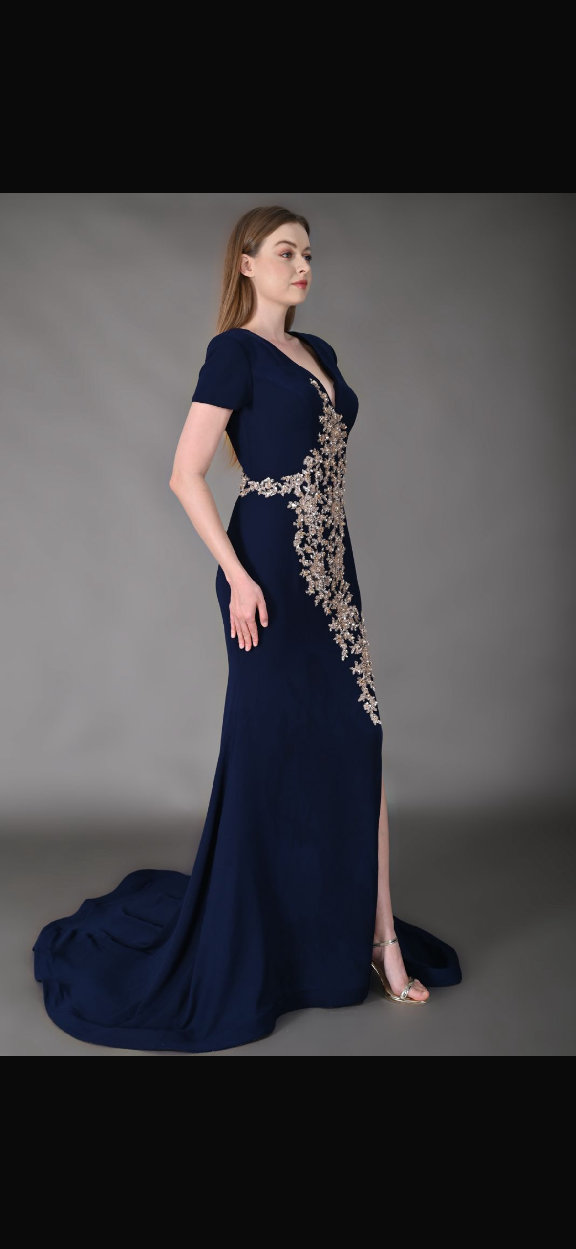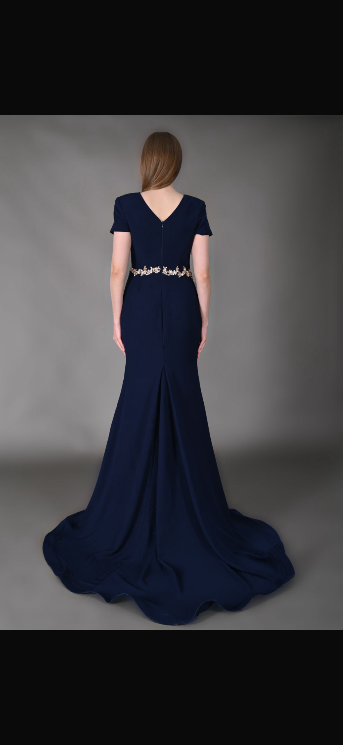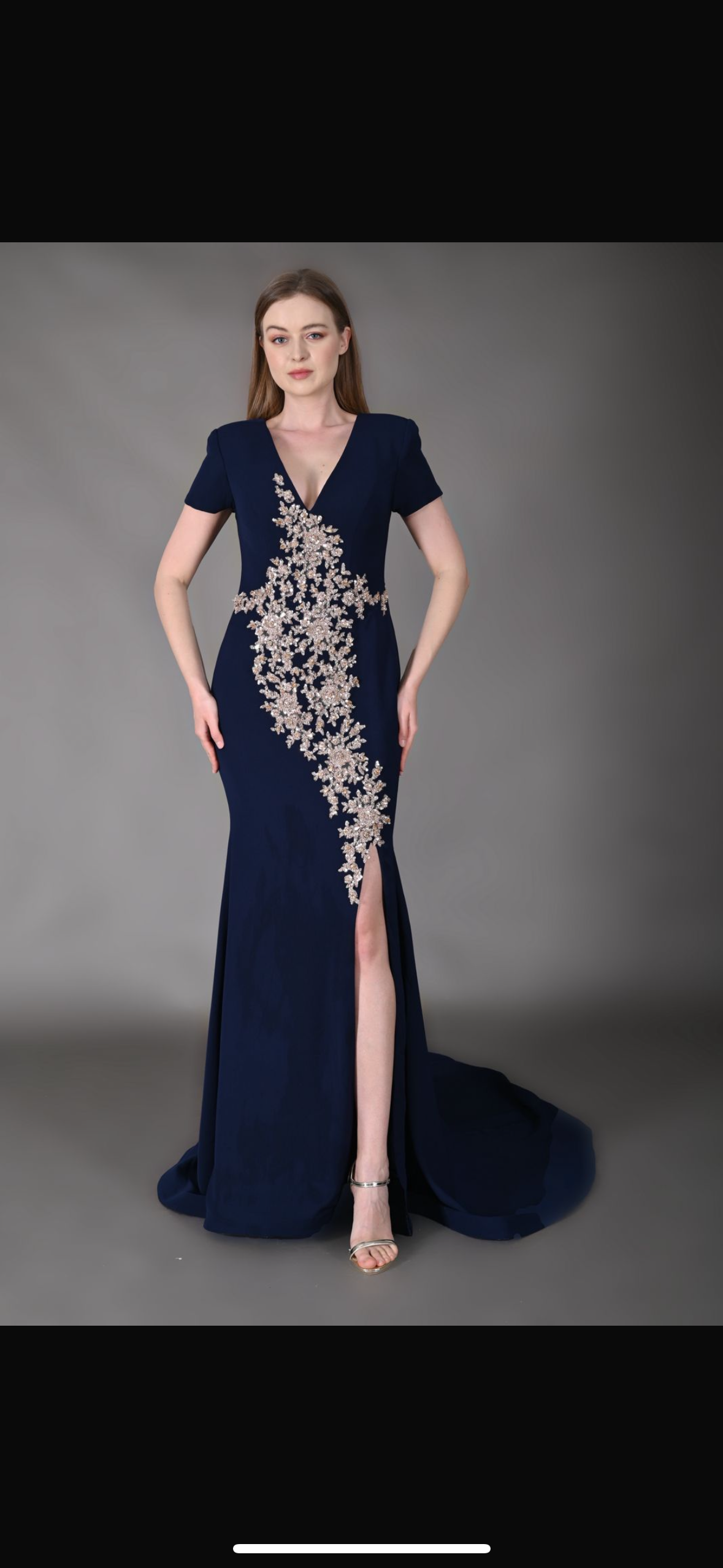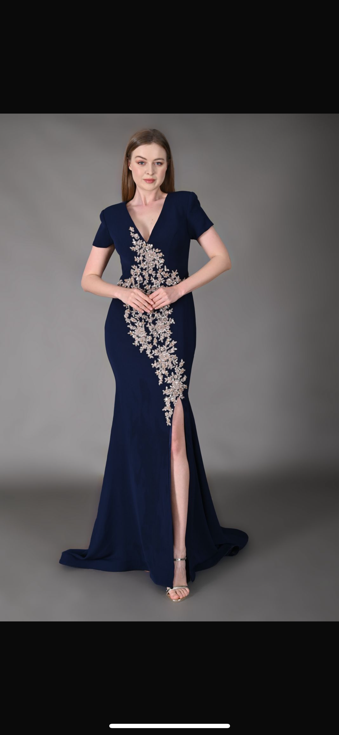 فستان سهرة من الكريب مشغول يدوياً بالترتر